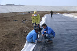 Select the imported and China’s famous-brand high-quality high-density polyethylene resin as the raw material, with stable product quality, in the leading position in China, and various performance indicators reach foreign advanced famous-brand product performance. High-density polyethylene geomembrane is especially applicable for environmental protection projects with strict service conditions and high performance indicator requirements. The product has very strong weathering-resistant property. Geomembrane’s service life is more than 100 years underground, black geomembrane’s service life can reach more than 20 years under the exposed conditions, and black & green geomembrane’s service life can reach more than 5 years under the exposed conditions. The product is widely applied to garbage disposal plant (anti-seepage and film covering), sewage and waste residue disposal plant, water conservancy project, underground building, national defense construction, tunnel and national reserves cave depot, roof waterproof project and aquaculture project.